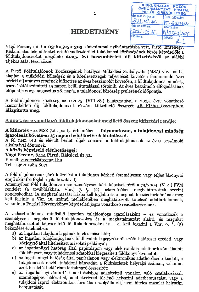 6414 Pirtó, Dózsa György utca 19.Email: onkormanyzat@pirto.huTelefon / Fax: 77/540-010Adatvédelmi szabályzatElektronikus ügyintézési adataink:Önkormányzat rövid neve: PIRTOONKKRID azonosító: 156725157